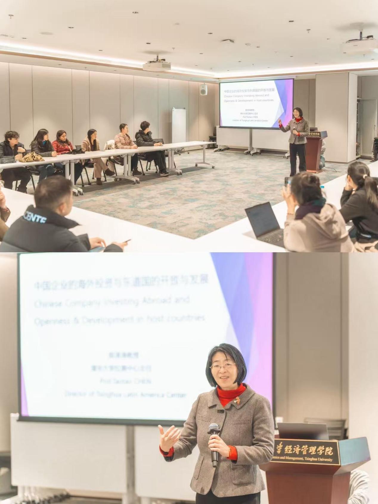 Professor Chen Taotao, Director of the Tsinghua University Latin American Center, focused on elaborating the core significance and overall planning of this study tour at the meeting. She pointed out that this study tour is an important extension of the China-Latin American Youth Responding to Global Challenges — 2025 Poverty Alleviation Challenge project, continuing the core logic of "mutual learning and mutual reference" of the project. With Tsinghua's poverty alleviation toolkit "5W1H+" as the theoretical support, it focuses on the actual development and poverty alleviation needs of Latin America, and builds a practical platform for in-depth dialogue between Chinese and Latin American youth. Professor Chen Taotao delivered a sharing themed Corporate Poverty Alleviation Practices: Chinese Enterprises Investing in Latin America and Win-Win Development with Host Countries. Combining different stages of China's development, she pointed out that many Chinese enterprises have seized opportunities to achieve their own sustainable development and effectively help local poverty alleviation and income increase. Professor Chen Taotao emphasized that these mature experiences derived from China's development practice provide a reference for Latin American countries to explore poverty alleviation paths in line with their local realities.