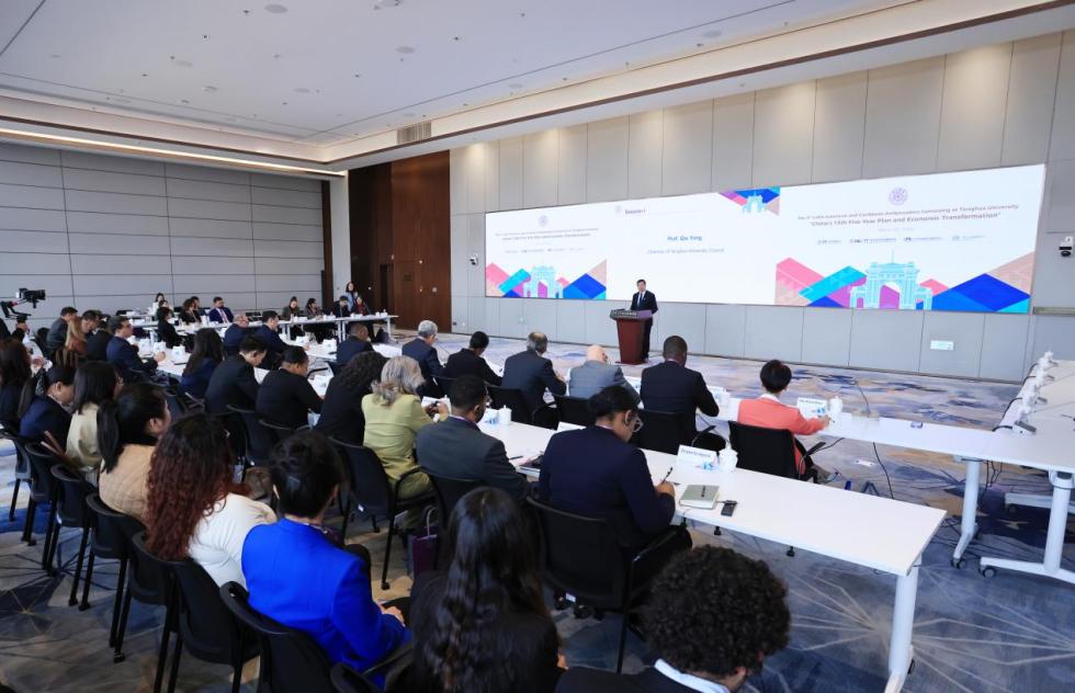 On March 25, 2026, the 5th Latin American and Caribbean Ambassadors’ Dialogue at Tsinghua, themed "China’s 15th Five-Year Plan and Economic Transformation", was held at Jianhua Building of Tsinghua University. Qiu Yong, Secretary of the Party Committee of Tsinghua University, Martin Charles, Ambassador of Dominica to China, and Zhang Run, Director-General of the Department of Latin American and Caribbean Affairs of the Ministry of Foreign Affairs, attended and delivered opening speeches. Yang Bin, Vice Chairman of the University Council of Tsinghua University, delivered a closing speech. Xiao Qian, Director of the Office of International Cooperation and Exchange of Tsinghua University, and Chen Taotao, Director of the Latin America Center, hosted the event. More than 30 diplomatic envoys and representatives from 22 embassies of Latin American and Caribbean countries participated in the event.