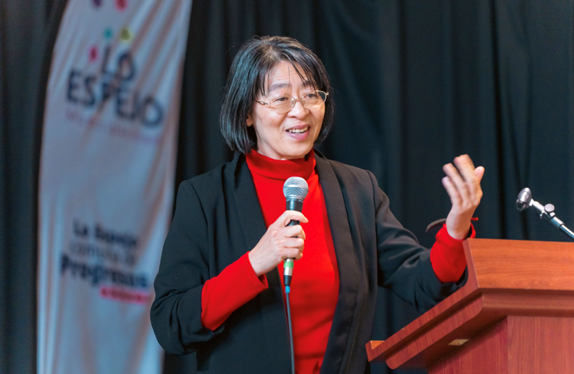 图 Javiera Reyes Jara介绍洛埃斯佩霍市减贫措施