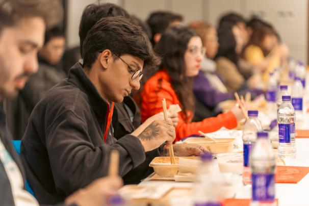 集体合影环节,主办方为参与者准备了写有其中文名字及祝福语的红色春联纸,大家手持春联,在轻松热烈的氛围中定格这一难忘瞬间。在自由交流中加深彼此了解,进一步拉近了中拉青年之间的距离。