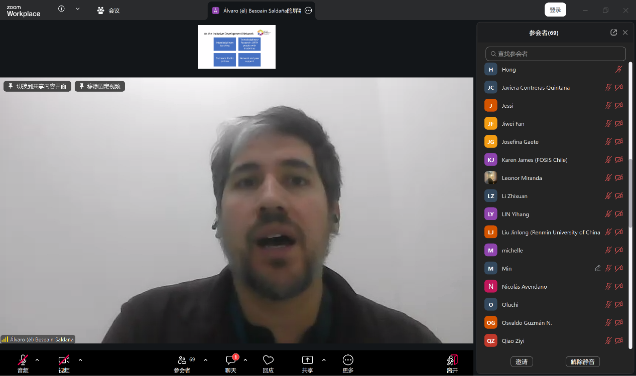 智利大学医学院医学技术系主任、南锥体大学蒙得维的亚集团(AUGM)残疾与无障碍学术委员会协调人、拉美及加勒比地区残疾与人权校际网络成员Patricio Bustamante Veas教授及其团队,分享了智利大学在包容性政策与残障学生无障碍支持方面的工作成果,从合理调整、教前支持、持续教师培训,包容性教育最低标准以及残障与性教育立场文件等角度,探讨无障碍技术与包容性教育在拉美本地化应用的潜力与路径。