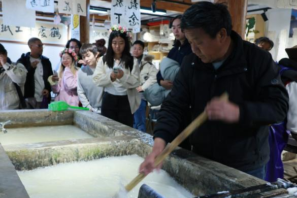 2026年1月24日,清华大学“2025减贫营”暨“乡创+”第十期创新创意营的中巴师生们走进大理喜洲古镇匠志集。作为清华大学“乡创+”项目为深化跨文化减贫实践特别增设的核心研学环节,开展以“减贫实践互鉴、青年携手同行”为主题的非遗研学活动。依托喜洲古镇深厚的白族文化底蕴,研学队伍通过参访非遗博物馆、参与古法造纸实践等环节,系统了解传统技艺的传承脉络与当代表达。