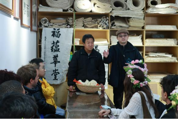 随后,省级非遗传承人尹旺松老师带来专业且生动的深度讲解,为中巴青年解锁古法造纸的千年密码。尹老师从云南手工造纸的历史渊源切入,细致拆解构树皮采集、去粗取精、捶打制浆等核心工序,让大家深刻体会到每一张古法纸张背后“慢工出细活”的匠心坚守。他分享的“坚守与创新并行”的传承故事,更让青年们读懂了手艺人生生不息的密码。讲解过后,尹老师现场演示造纸关键步骤,细腻的操作手法与专注的神情,赢得了师生们的阵阵掌声。